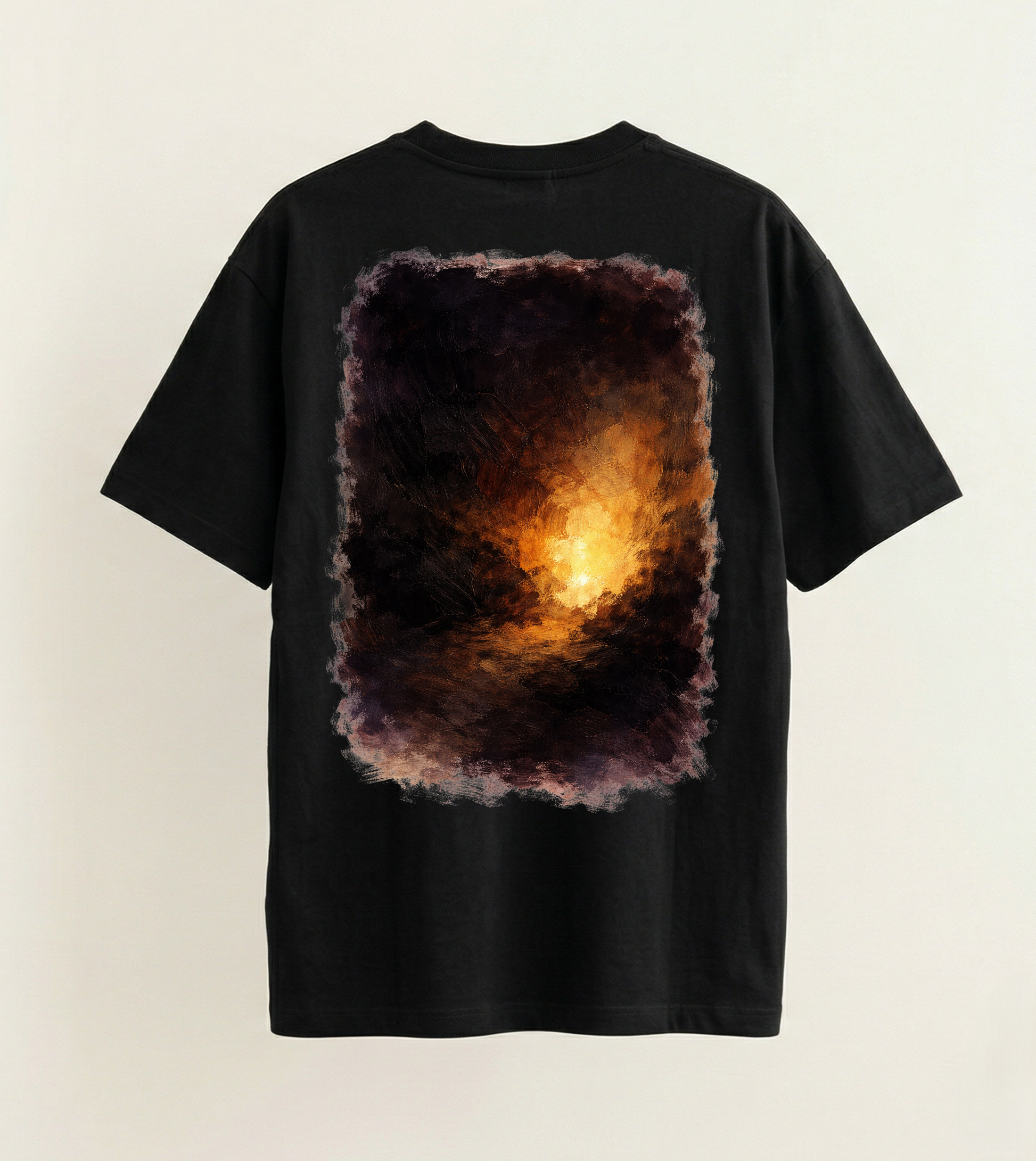 - Back: abstract chiaroscuro-inspired artwork with painterly edges